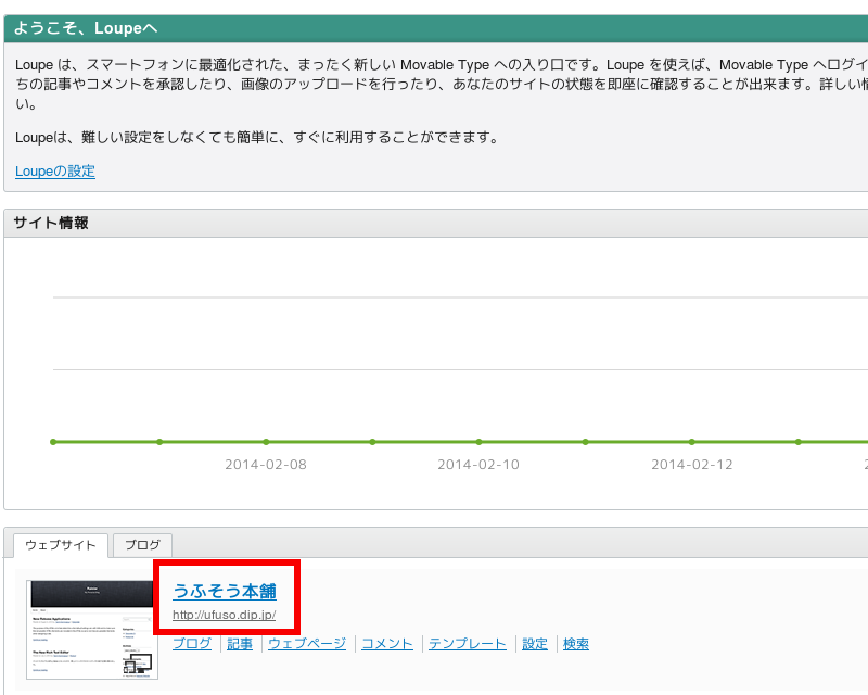 (14)サインインに成功すると下の画面が表示されるので、作成した赤枠のウェブサイト名をクリック