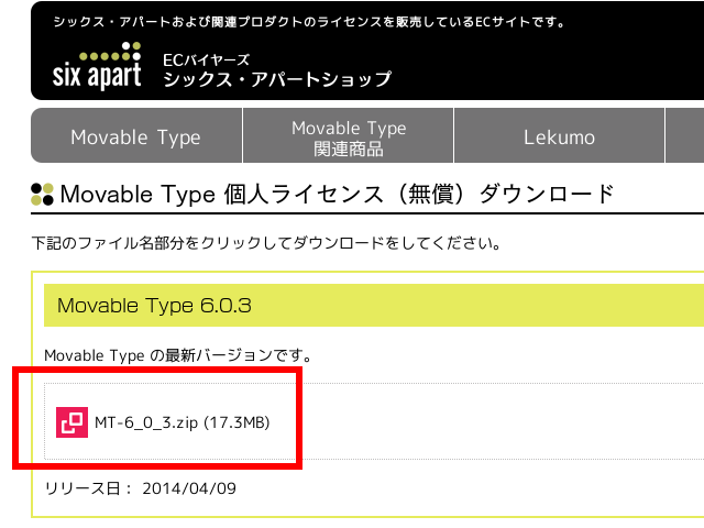 1.Movable Typeの個人無償ライセンス取得