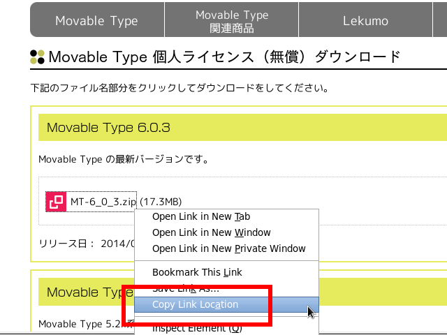 (5)表示されるサイトの赤枠「MT-6_0_3.zip」を右クリック