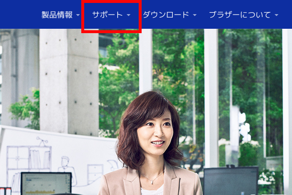 1.ここをクリックして下図サイトにアクセスし赤枠の「サポート」をクリック(画像はクリックすると拡大。以下同)