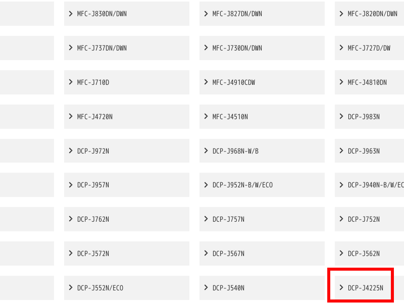 3.該当するプリンター名をクリック(赤枠は例示の「DCP-J4225N」)