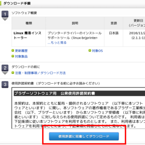 #ユーザー(tuは例示)から管理者(root)に変更 [tu@ufuso ~]$ su- #管理者(root)パスワードを入力(パスワードは表示されない)。 password: #ダウンロードファイルがある「ダウンロード」フォルダへ移動 [root@ufuso ~]# cd /home/tu/ダウンロード #ダウンロードファイル名を確認 [root@ufuso ダウンロード]# ls -a /home/tu/ダウンロード ... ... #「linux-brjprinter-installer」名で確認できる linux-brjprinter-installer-2.2.1-1.gz ... ... #ダウンロードファイルを展開 [root@ufuso ダウンロード]# gunzip linux-brjprinter-installer-2.2.1-1.gz #Installの実施。DCP-J4225Nは自分のプリンタの機種名に置き換えのこと [root@ufuso ダウンロード]# bash linux-brjprinter-installer-2.2.1-1 DCP-J4225N 以下のパッケージが見付かりました。 dcpj4225nlpr-3.0.2-0.i386.rpm dcpj4225ncupswrapper-3.0.2-0.i386.rpm brscan4-0.4.4-3.x86_64.rpm brscan-skey-0.2.4-1.x86_64.rpm #Installするので「y」入力後、エンターキー押下 インストールしますか? [y/N] ->y ========================================= 上記使用許諾に同意しますか? [Y/n] ->y ========================================= … ========================================= 上記使用許諾に同意しますか? [Y/n] ->y Device URIを指定しますか? [Y/n] ->y 0: serial:/dev/ttyS0?baud=115200 wait 5s. ========================================= ========================================= ========================================= ========================================= |