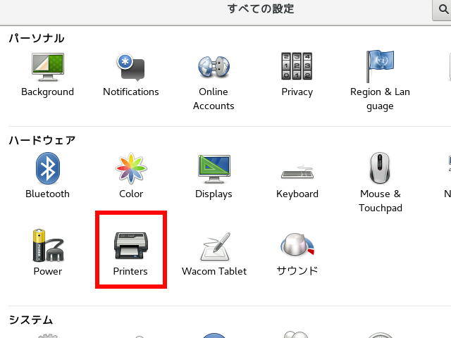 2.赤枠の「Printers」をクリック