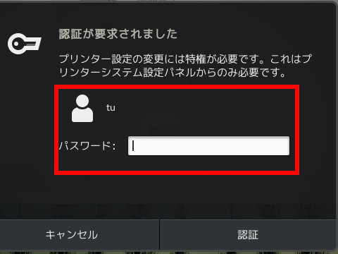 4.赤枠にあなたのユーザーパスワードを入力して、画面右下の「認証」をクリック