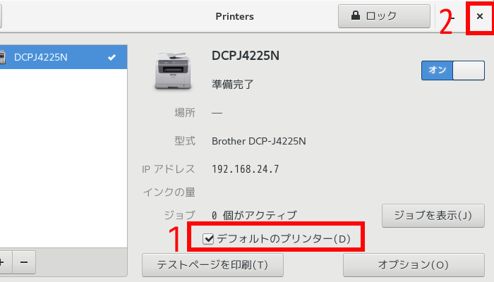 年賀状の季節になったので、プリンタを接続して印刷することに。Linux系のパソコンで使えるプリンタが増えているかは不明ですが、Brother製品は結構使えるので(Linux対応商品の一覧はここ)、買い替えで使い続けています。今回、CentOS7.4でプリンタの設定をしようとしたところ、前回のやり方ではうまくいかなかったので備忘録を残しました。以下は、「DCP-J4225N」を接続する場合の設定方法です。