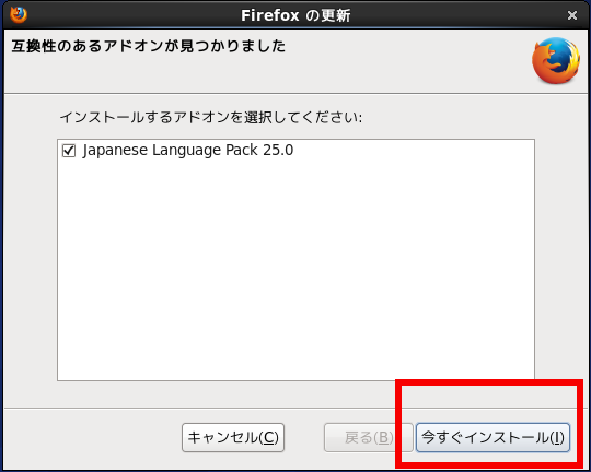 2.Language Packの案内画面が出ますので、赤枠の「今すぐインストール」をclick