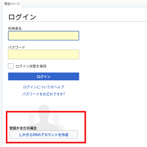 3.赤枠内に作成した利用者名とパスワードを入力して「ログイン」ボタンをクリック