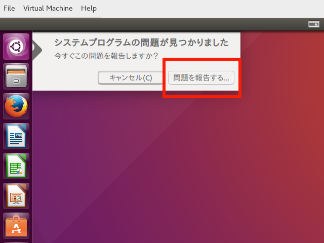 (1) この画面が表示されたら、赤枠の「問題を報告する」をクリック。(画像はクリックすると拡大表示。以下同じ)