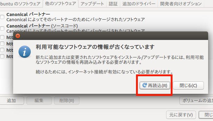 (13) この画面が表示されたら、赤枠の「再読込」をクリック。